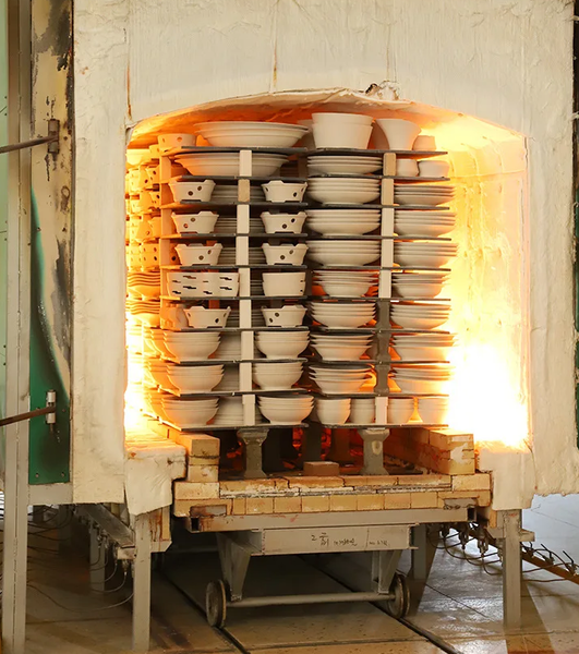 Фарфор в основном состоит из каолиновой глины, полевого шпата и кварца. Это сырье тщательно очищается, придается форма, а затем обжигается при температуре от 1200°C до 1400°C. Этот высокотемпературный обжиг приводит к остекловыванию материалов, превращению их в стеклообразное вещество, которое придает материалу характерную прочность, белизну и прозрачность.