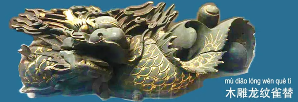 Резьба по дереву на зданиях использовалась в качестве украшения ворот, окон, балок, колонн и т.д. Резьба по дереву по всему дому служит наглядным уроком доброжелательности, праведности, мудрости, верности, образования.