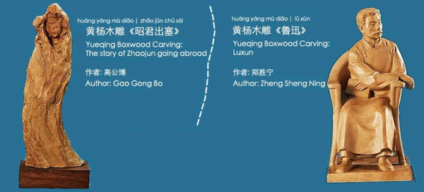 Резьба по самшиту в Юэцине, наряду с резьбой по дереву города Дуньян и резьбой по камню уезда Цинтянь, известна как "Три резьбы Чжэцзяна". Основные сюжеты варьируются от персонажей народных сказок до классических буддийских писаний, включая восемь Бессмертных, Гуань Юя, Майтрею, Авалокитешвару и т.д.